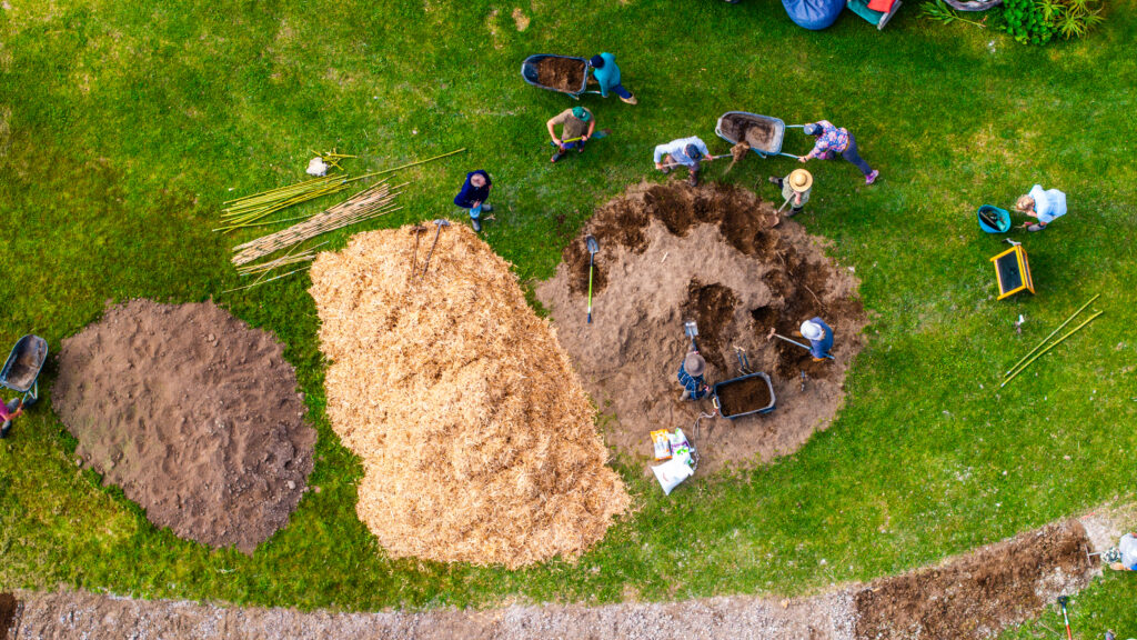Our first task was to add sandy soil, then topsoil to each bed. Fourteen of us worked together — a living hive, each person instinctively finding their role. Looking back, what struck me was how little urge I felt to direct or manage. I was content to play my part, fully and happily trusting the collective rhythm at work.
